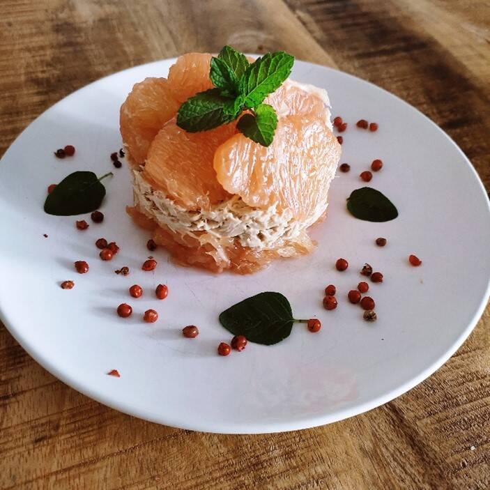 - Retirer la peau des pamplemousses et les couper en morceaux